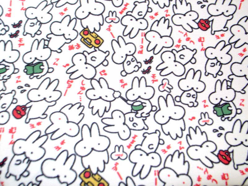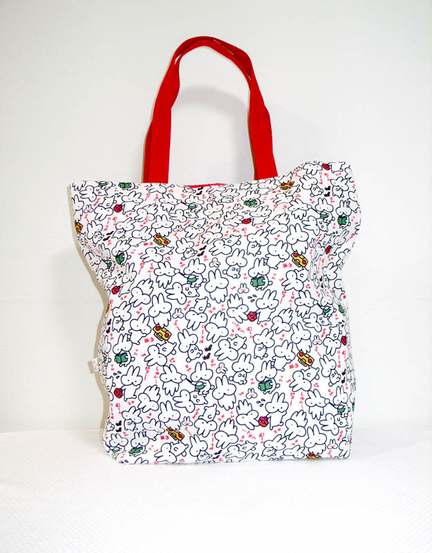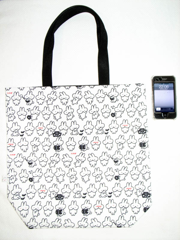オリジナルキャラクターのウサギの色々な仕草がプリントされた大きめのトートバッグです。